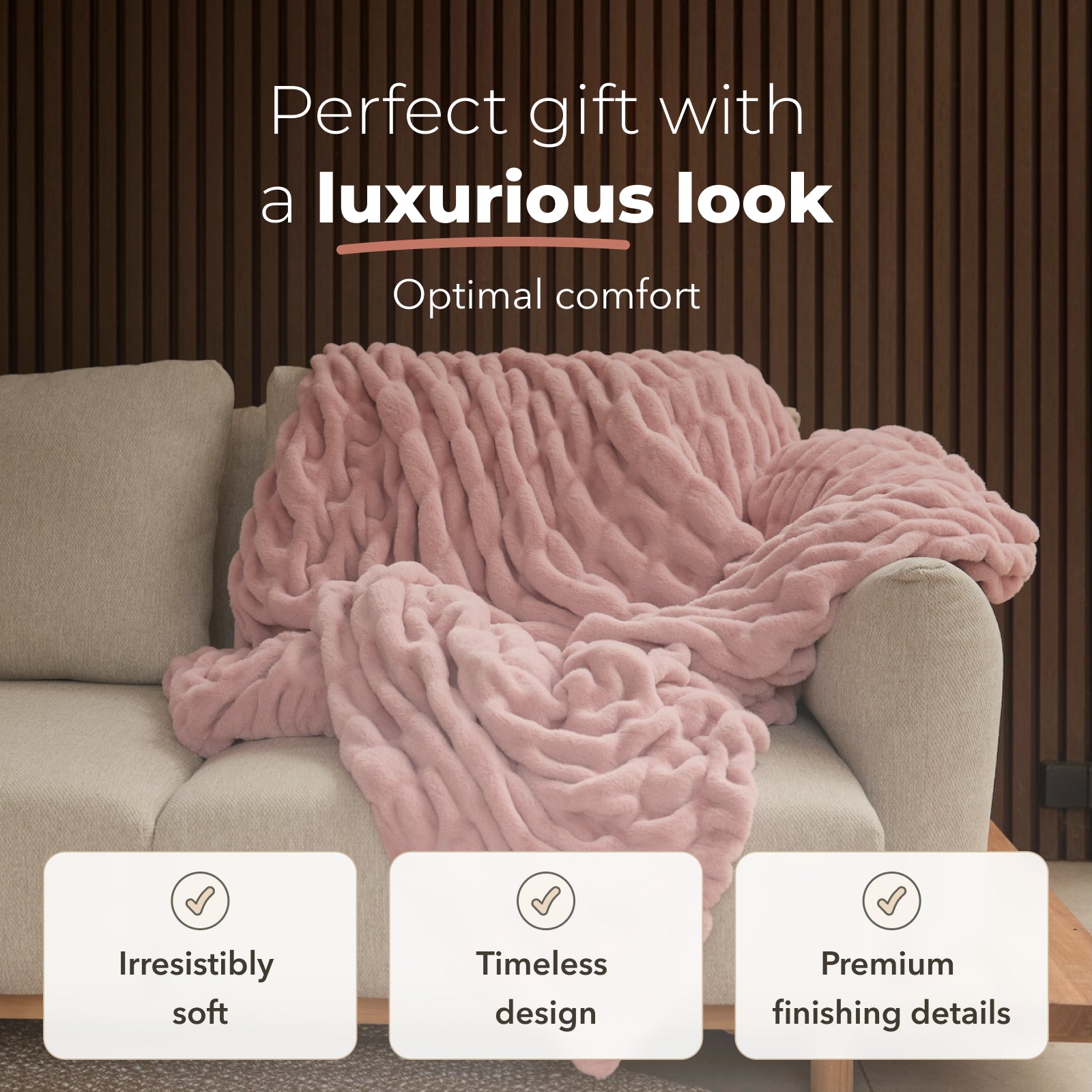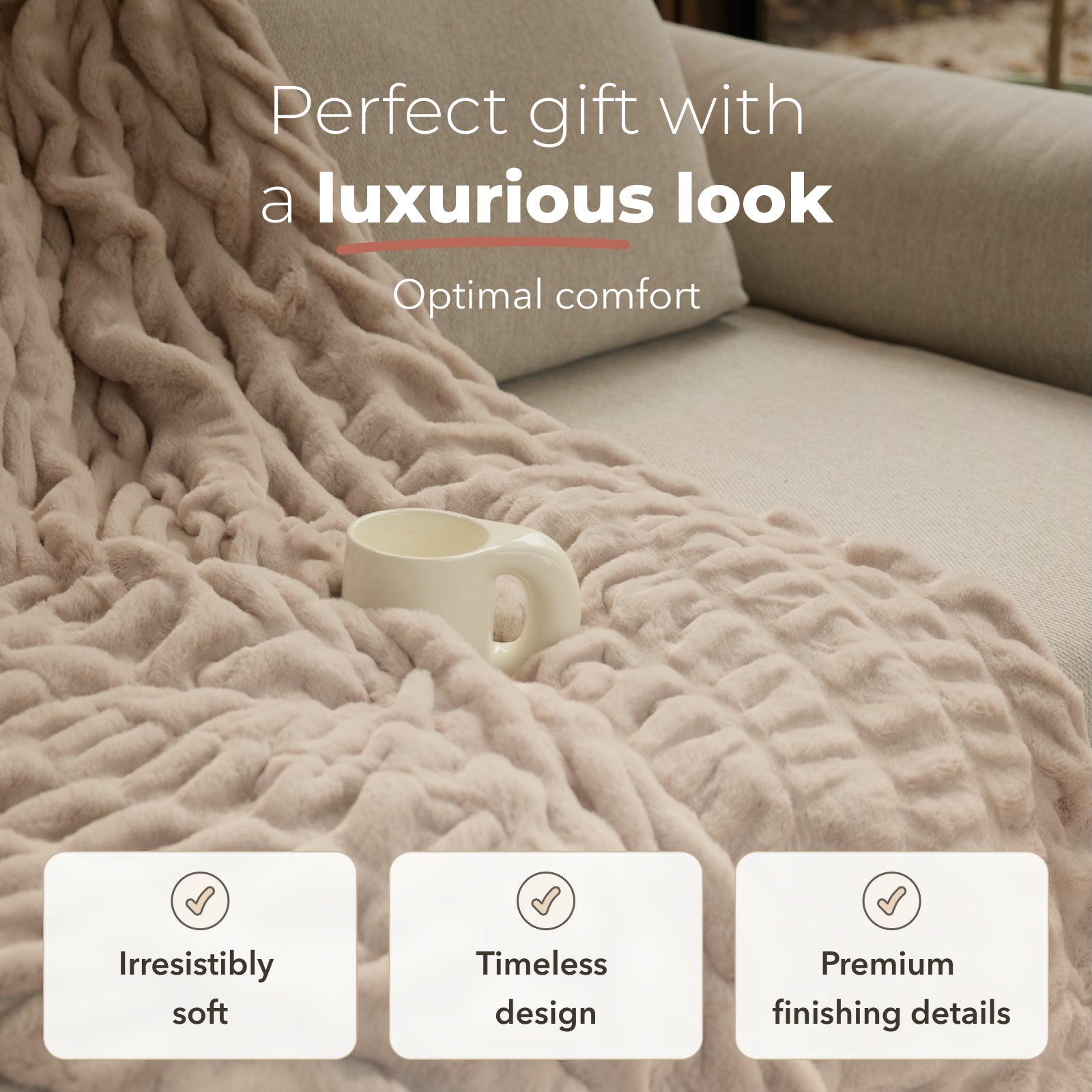 The vanna "COMFORT" blanket is made for those moments when you simply want to unwind. Its refined, full texture (480 gsm) feels luxuriously soft and instantly creates a sense of comfort, warmth and relaxation. Perfect for the sofa, across your bed, or as an extra layer on cooler evenings.